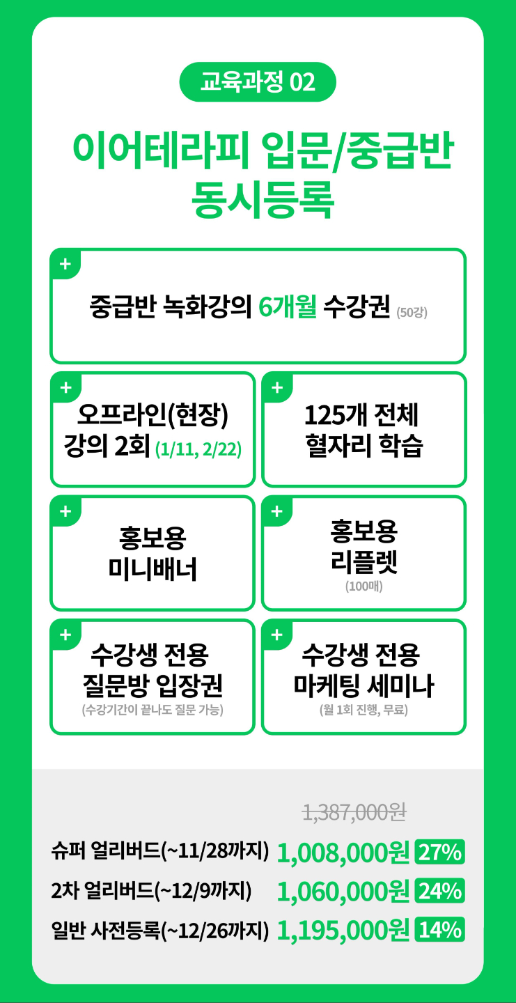 이어테라피 정규과정 19기 2차얼리버드 등록 마감까지