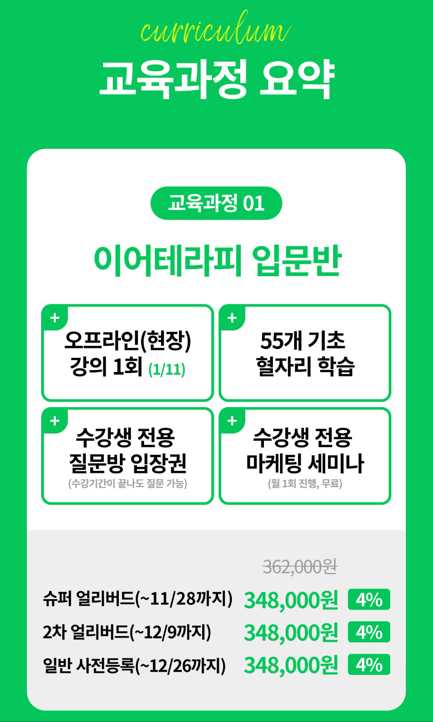 이어테라피 정규과정 19기 2차얼리버드 등록 마감까지