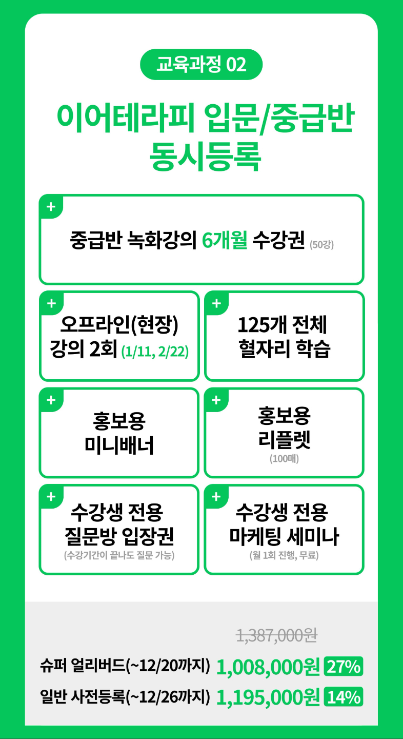 이어테라피 정규과정 슈퍼얼리버드 등록 마감까지